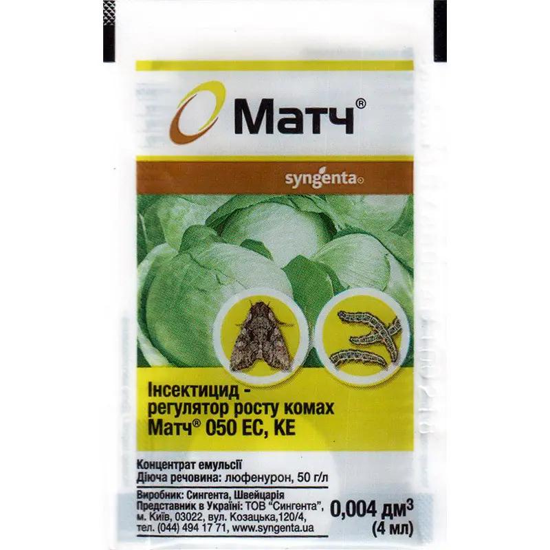 Інсектицид-регулятор зростання комах-шкідників. Діюча речовина - люфенурон 50 г/л. Препаратна форма - концентрат емульсії. Клас токсичності - 3. Особливості застосування інсектициду "Матч" Культура Шкідники Норма витрати Капуста Совки, міль, білянки 4 мл/4-5 л води/сотка Яблуня Плодоїдка, листовійка, міль 8 мл/4-5 л води/2-5 л на дерево Виноград Гронова листовійка 8 мл/4-5 л води/1,5-2 л на кущ Робочий розчин готується безпосередньо перед використанням. Препарат «Матч» використовується на початку періоду масової яйцекладки - період відродження шкідників. Максимум обробок - 2. Термін очікування: капуста - 14 днів, яблуня, виноград - 30 днів. У нашому інтернет-магазині продаються виключно оригінальні високоякісні препарати.