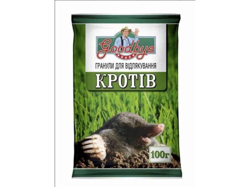Гранулы для отпугивания кротов Good bye – средство для ограничения доступа кротов на придомовых и общественных территориях. Гранулы Гуд бай содержат ароматические масла, неприятные для обоняния животных. Их запах заставляет кротов и землерок покинуть территории, на которых они наносят вред (клеумбы, газоны, спортивные и детские площадки, придомовые территории, рекреационные зоны) и искать другие места для обитания и охоты. Гранулы для отпугивания кротов и землеройок можно купить в нашем интернет- магазине Гарден Клаб с бесплатной доставкой и по лучшей цене. Средство необходимо вносить во все кротовины, что находится на участке. Проводить отделку при появлении новых кротовин. Рекомендации по применению гранул для отпугивания кротов Гуд бай : Очистить вход в кротовину, поместить гранулы из расчета до 50г на одну нору. Прикрыть лунку, чтобы запах распространялся по вырытым ходам. Средство вносить во все кротовины, что находится на участке. Проводить отделку при появлении новых кротовин. Состав гранул для отпугивания кротов Гуд бай: Ароматические масла, спирт, наполнители.