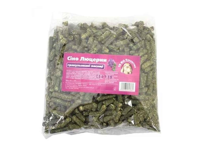 Натуральный корм для кроликов, морских свинок, хомяков, мышей, крыс и шиншилл. Является незаменимым источником белка и витаминов, хлорофила, кальция, фосфора, железа и других минеральных веществ. Повышает иммунитет животных, поддерживает баланс кишечной флоры, хорошо очищает кровь и лимфатическую систему, повышает лактацию в кормящих самок. Диаметр гранулы: 4 мм. Вага: 450 г.