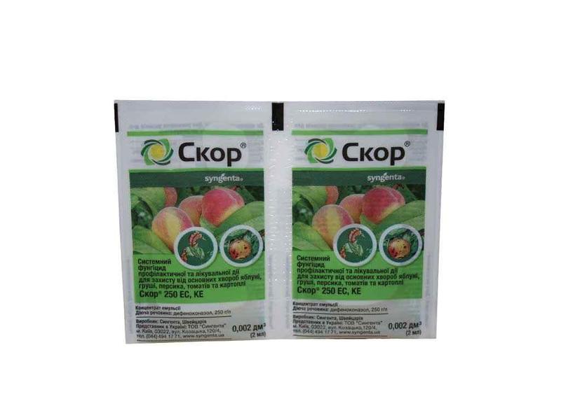 Системный фунгицид с длительным профилактическим и выраженным лечебным действием, для борьбы с паршей, боростойстой росой, кудрявости листьев фитофторозоми альтернариоз и другими грибковыми заболеваниями.Препарат быстро проникает в растение и проявляет биологическое активность независимо от погодных условий. Биологическая активность позволяет сохранить зеленый листовой аппарат до поздней осени.Период защитного действия При профилактических обработках 7-10 дней (в условиях умеренного развития болезней) и 7 дней в условиях эпифитотического развития болезней.Фитоксичность и безопасностьКласс опасности: 3 (мерно опасное вещество). Препарат не токсичный для птиц и пчел, но токсичный для рыб. Необходимо избегать загрязнения водоемов и источников питьевой воды остатками препарата и водой, используемой для промывки тары и оборудования. Препарат не должен попадать в продукты питания и корма. Возможность возникновения резистентности Рекомендуется блок разделок фунгицидом Скорость или чередование с препаратами других химических классов. При проведении блока обработок фунгицид Скорость продлить обработку фунгицидами другого химического класса в полной норме расход через 8 дней после последней обработки фунгицид Скорость.Детирующие вещества: дифенокононазол, 250 г / л.Препаратировочная форма: концентрат эмульсий.