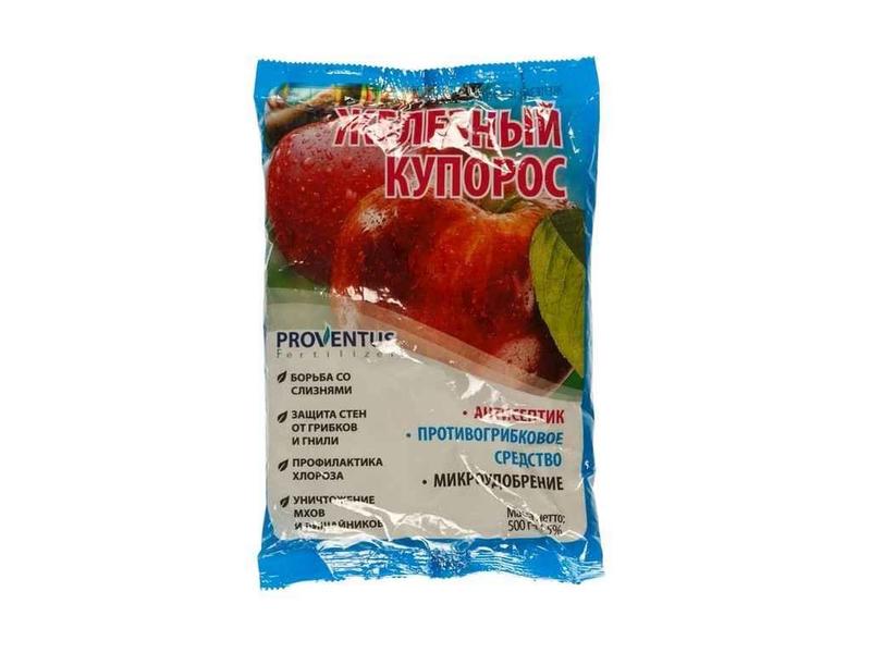 Залізний купорос Залізний купорос є антисептичним, фунгіцидною засобом, що дозволяє боротися з гниллю, цвіллю, грибними захворюваннями рослин. Даний препарат - єдине добриво, що містить в доступному для рослин вигляді залізо. застосовується: - для обробки стін підвалів і овочесховищ; - для позбавлення від будинкового грибка; - для заліковування дупел і ран на деревах; - для весняної та осінньої побілки стовбурів плодових дерев; - для обробки садових культур проти лишайників, парші та інших подібних недуг; - для лікування плямистості троянд; - для профілактичної обробки винограду; - для боротьби зі шкідливими комахами; - в якості добрива .. Джерело: ********************************************************************* sadovodstve#! Термін придатності 3 роки БрендПровентус Країна-виробникУКРАЇНА
