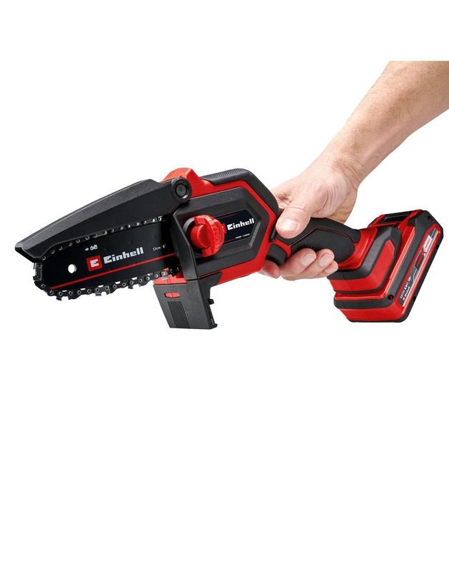 Пила аккумуляторная Einhell GE-PS 18/15 Li BL Kit 2.0 (46000402) характеристики: Напряжение аккумулятора 18 В Ёмкость аккумулятора 2.0 А/час Скорость вращения цепи 4.8 м/с Длина шины 158 мм Рабочая длина 125 мм Вес продукта 1.8 кг Мини пила аккумуляторная Einhell GE-PS 18/15 Li BL Kit 2.0 (46000402) особенности: Член семейства Power X-Change Бесщеточный двигатель Идеально подходит для обрезки и придания формы деревьям и кустарникам Низкая вибрация благодаря высокоэффективному двигателю Простое техническое обслуживание благодаря замене лезвия и цепи без инструментов Высококачественная шина и цепь для высокой режущей способности Безопасное применение благодаря защите рук и откидному кожуху цепи Тонкий и легкий дизайн для эргономичной работы Крышка лезвия для безопасного хранения Член семейства Power X-Change, требуется батарея 1x 18 В Аккумулятор 2.0А/час и зарядное устройство Einhell 3A Гарантия 36 месяцев