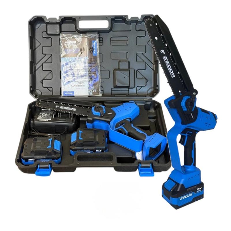 Аккумуляторная мини-цепная пила ZEGOR CSMQ-21BL-8 - компактный, мощный и удобный инструмент для распила древесины и садовых работ Аккумуляторная мини-пила ZEGOR CSMQ-21BL-8 оснащена современным бесщеточным двигателем, который обеспечивает высокую производительность, экономичное энергопотребление и длительный срок службы. Благодаря лёгкой конструкции и эргономичной форме инструмент подходит для работы одной рукой, что делает его идеальным для садовых работ, обрезки веток, заготовки дров и мелких строительных задач. В комплекте вы получаете две литий-ионные батареи ёмкостью 4000 мА*ч, зарядное устройство и удобный кейс для хранения и транспортировки. Пила также поддерживает работу с удлинителем, что расширяет её функциональность. Основные особенности ZEGOR CSMQ-21BL-8: - Бесщеточный двигатель - меньше нагрева, больше мощности и долговечности. - Автоматическая смазка цепи - минимум обслуживания и стабильная работа. - Лёгкое натяжение цепи - быстрое регулирование без дополнительных инструментов. - Высокая скорость реза - до 6.6 м/с, обороты до 5500 об/мин. - Две АКБ 21 В по 4000 мА*ч - продолжительная автономная работа. - Компактная шина 8" (203 мм) - удобна для обрезки веток и древесины небольшого диаметра. - Эргономичность - малый вес, удобная форма, возможность работы одной рукой. - Практичный кейс в комплекте - для хранения и транспортировки. Технические характеристики: - Тип двигателя: бесщеточный - Номинальное напряжение аккумулятора: 21 В - Длина шины: 8" (203 мм) - Шаг цепи: 1/4" (6.35 мм) - Обороты: 0-5500 об/мин - Скорость цепи: 6.6 м/с - Ток без нагрузки: 2.5 А - Смазка цепи: автоматическая - Ёмкость масляного бака: 20 мл - Аккумулятор: Li-ion, 4 А*ч (2 шт.) ZEGOR CSMQ-21BL-8 - это универсальный аккумуляторный инструмент, который станет надёжным помощником в саду, при ремонте или заготовке дров. Благодаря бесщеточному мотору, автоматической смазке и большой автономности, пила сочетает в себе мощность, удобство и практичность. ХАРАКТЕРИСТИКА Аккумулятор в комплекте - 2 Длина шины, мм - 203 Особенности - SDS система - Автоматическая смазка цепи - Боковое натяжение цепи - Одноручные Напряжение аккумулятора, В - 21 Тип двигателя - Бесщеточный Страна производитель - Китай Вес, кг - 2 Шаг цепи, дюйм - 1/4 Расположение двигателя в пиле - Продольное (прямое) Скорость вращения цепи, м/сек - 6.5 Объем бака для смазки, л - 20 Емкость аккумулятора, А*ч - 4 Ач Гарантия - 24 месяца Толщина звена цепи, мм - 1.1