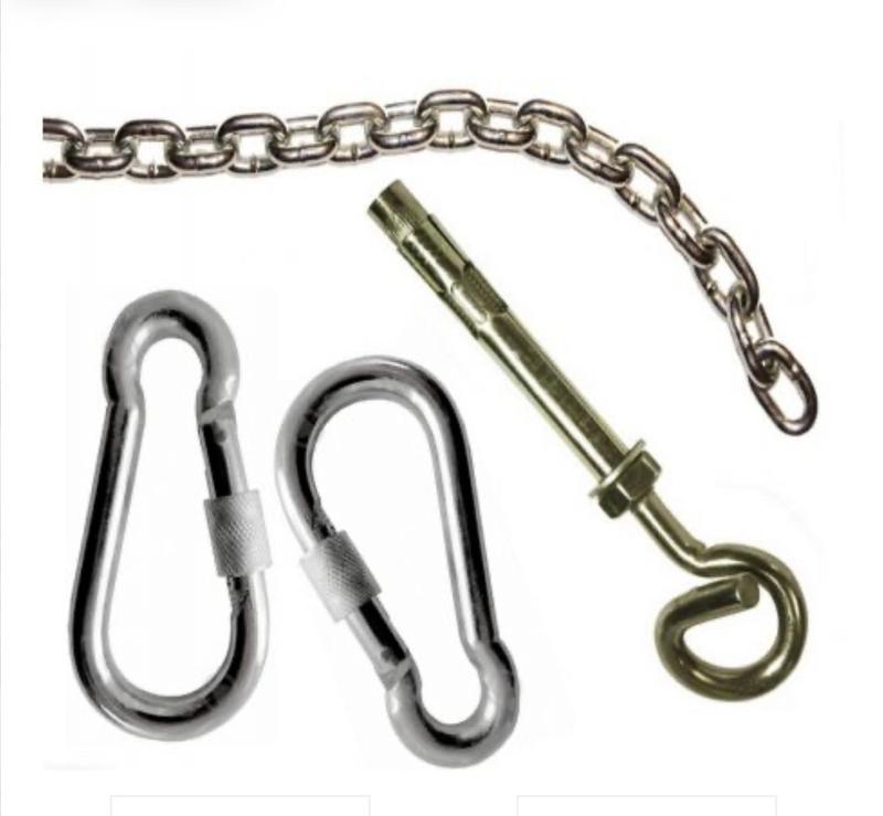 Кріплення для гамака: - 2 шт оценкованих карабіна підвищеної міцносі; - 2 шт канат поліпропіленовим сердечником по 4 м. (доступно вибір кольору під гамак чи садову гойдалку)