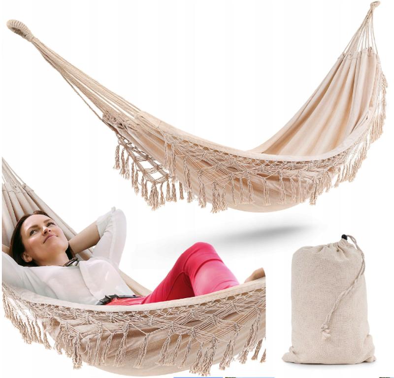 Хотите понежиться на солнышке или отдохнуть в тени, медленно покачиваясь на свежем воздухе? Бразильский гамак Di Volio Bari -- идеальный выбор для вашего отдыха. Этот стильный и комфортный гамак станет отличным дополнением вашего сада или двора, обеспечивая не только эстетичный вид, но и отличный комфорт для релаксации. Оригинальный дизайн, включающий ажурное плетение и изысканные кисточки, которые свободно свисают с обеих сторон, перенесет вас в атмосферу Бразилии. Купить бразильский гамак Di Volio Bari -- это выбор в пользу качества и надежности по доступной цене. Прочная конструкция гамака гарантирует безопасность и надежность даже при большом нагрузке, а полотно, изготовленное из хлопка и полиэстера, обеспечит комфорт на протяжении долгого времени. Гарантия надежности и прочности материалов Гамак Di Volio Bari -- это превосходный продукт итальянской компании Di Volio, которая славится высоким качеством своей продукции. Все изделия бренда отличаются эргономичностью и долговечностью. Гамак Di Volio Bari имеет удобные размеры: - Длина: 200 см - Ширина: 150 см - Общая длина (с креплением): 300 см - Нагрузка: 120 кг - Материал: 65% хлопок и 35% полиэстер - Цвет: белый - Гарантия: 24 месяца Выбор цвета: белый для обновления интерьера или черный для контраста и экзотичного вида. Важно: в базовую комплектацию не входят крепежные элементы. Купить бразильский гамак Di Volio Bari в двух цветах: белый или черный, с доставкой по всей Украине. Гарантия от производителя -- 24 месяца. Преимущества: Hop-Sport - это больше, чем просто интернет-магазин: Гарантия от производителя: Задержка с доставкой? Брак товара? Мы вернем 100% стоимости и подарим приятный бонус к следующей покупке! Ваша радость - наш приоритет. Собственный импорт: Мы напрямую сотрудничаем с производителями, поэтому предлагаем самые выгодные цены на рынке. Нашли дешевле идентичный товар? - звоните, и мы сделаем вам предложение, от которого невозможно отказаться! Проверка перед отправкой: Каждый товар проходит тщательную проверку перед отправкой. Мы ценим ваше доверие и гарантируем, что вы получите только лучшее. Надежная упаковка: Мы знаем, как важно, чтобы ваша покупка прибыла в идеальном состоянии. Поэтому мы используем только самые прочные материалы и упаковываем каждый заказ с особой заботой. Реальные фото: Наша собственная фотостудия гарантирует, что вы увидите товар таким, какой он есть на самом деле. Никаких сюрпризов, только честные впечатления! Собственный сервис: Наша команда профессионалов всегда готова помочь с любыми вопросами по выбору, установке и обслуживанию спортивного оборудования. Мы обеспечиваем гарантийное и постгарантийное обслуживание, чтобы вы могли наслаждаться своими покупками долгие годы. Быстрая доставка: Мы понимаем, что вы не можете дождаться, чтобы начать тренироваться. Поэтому мы предлагаем быструю и надежную доставку по всей Украине, чтобы вы могли получить свой заказ в кратчайшие сроки. Более 8 лет опыта и тысячи довольных клиентов: Мы гордимся своей репутацией и доверием, которое нам оказывают наши покупатели. Более 53% из них возвращаются к нам снова и снова. Присоединяйтесь к нашей большой спортивной семье! Не откладывайте свои мечты на потом! Заходите в Hop-Sport и сделайте первый шаг к здоровой, активной и счастливой жизни! Варианты оплаты: Hop-Sport: Оплата - легко и удобно! Мы предлагаем разнообраз