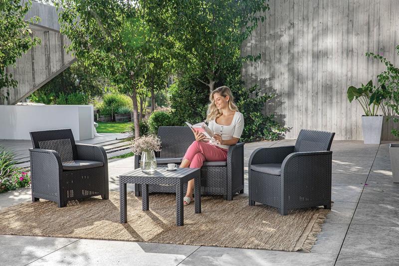 Комплект садовой мебели Keter Rosalie Set With Classic Table Садовая мебель Rosalie это сочетание элегантности, удобства, современного дизайна и высоких потребительских качеств. Предлагаемые нами мебельные гарнитуры Keter прекрасно впишутся в дизайн приусадебных садов, террас, балконов, а также жилых зон отдыха. Красивый стиль, эргономичные формы и высокое качество исполнения являются основными преимуществами нашей продукции. Новый комфортабельный гарнитур Rosali с закругленными подлокотниками - это идеальное применение для садов, балконов и террас. Даже в ограниченном пространстве с ротанговым гарнитуром Rosali можно создать место мечты для отдыха на свежем воздухе. Гарнитур Rosalie Set состоит из удобного двухместного дивана, двух кресел и классического столика. Удобно профилированные сиденья и мягкие полиэстеровые подушки - это дополнительные достоинства продукта. Гарнитур легко содержать в чистоте, он устойчив к ультрафиолетовому излучению. БЛАГОДАРЯ СИСТЕМЕ CLICK AND GO ГАРНИТУР КРАЙНЕ ПРОСТ В МОНТАЖЕ. Характеристики мебели Keter Rosalie Set With Classic Table Размеры [cm]: кресло (x2): 65 x 63 x 74, диван: 65 x 113 x 74, столик: 59 x 59 x 43 Размеры упаковки [cm]: 120 x 64 x 60 Вес Нетто [kg]: 27.75 Цвет (мебель/подушки): графит/прохладный-серый. Преимущества мебели Rosalie Set - Современный, стильный, элегантный дизайн - Изготовлен из прочного пластика, устойчивого к неблагоприятным погодным условиям - Благодаря небольшому весу его удобно перемещать, транспортировать и хранить - Не боится влаги, холода - Текстура поверхности имеет имитацию ротанга, поэтому не требует особого ухода, в отличие от волокон натурального ротанга - Нежелезный каркас – не гниет и не ржавеет - Благодаря полипропилену, устойчивому к высоким температурам, цвет не выгорает и не тускнеет - Долговечность и прочность - Легко мыть и удобно хранить - Легко собирается В связи с колебанием курса цену уточняйте! Цены уточняйте! Цены приятно порадуют! Хотите больше информации? Широкий ассортимент. Прямой импорт европейского производителя. Доставка по всей Украине.