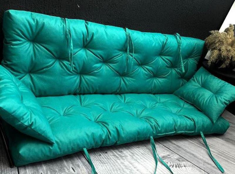 Матрас для садовой качели. Матрасы изготовлены из водоотталкивающей ткани Оксфорд 600. Наповнювач: холлофайбер + поролонова крихта . Крепится с помощью завязок. Уход: стирать на деликатном режиме, при температуре не выше 30 градусов. Можно протереть влажной салфеткой. Изготавливаем матрасы по индивидуальным размерам.