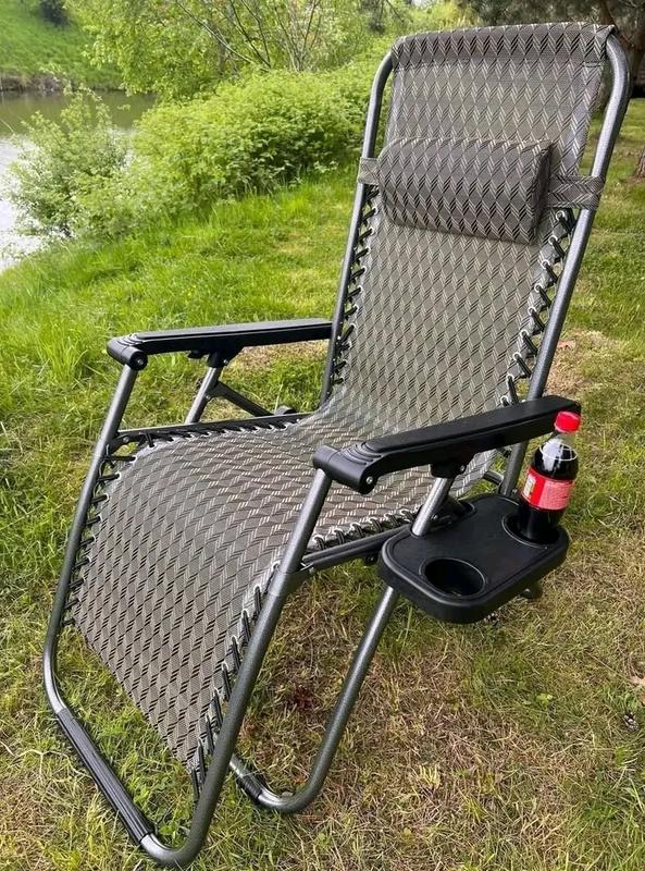 Шезлонг – кресло Gravity до 120 кг Размер в сложенном виде: 97x64 см Размер в разложенном виде : 110x64x180 Отправка новой по почте. Оплата при получении.