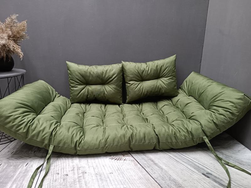 Матрас для садовой качели. Матрасы изготовлены из водоотталкивающей ткани Оксфорд 600. Наповнювач: холлофайбер + поролонова крихта . Крепится с помощью завязок. Уход: стирать на деликатном режиме, при температуре не выше 30 градусов. Можно протереть влажной салфеткой. Изготавливаем матрасы по индивидуальным размерам.
