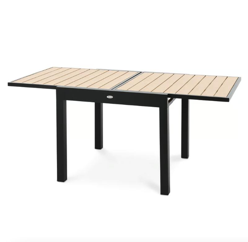 Стол Di Volio Comlo раздвижной Представьте идеальный обед на открытом воздухе - свежий воздух, вкусные блюда и приятная компания. Но что делать, если гостей больше, чем вы ожидали? Раздвижной садовый стол Comlo от Di Volio легко решит эту проблему! Благодаря инновационной системе сборки он адаптируется к вашим потребностям, расширяясь от 90см до 180см. Это идеальное решение для семейных встреч, барбекю с друзьями или неожиданных посещений гостей. Но Comlo - это не только удобство. Его элегантный современный дизайн в сочетании с прочными материалами делает этот стол не только функциональным, но и стильным. Черный алюминиевый каркас с порошковым покрытием обеспечивает антикоррозионную защиту, а столешница из поливуда бежевого цвета идеально имитирует натуральное дерево, придавая мебели изысканность и естественный вид. Кроме того, регулируемые ножки позволяют адаптировать высоту стола к вашим потребностям и компенсировать любые неровности поверхности. Устойчивость, долговечность и стиль - вот что делает Comlo незаменимым элементом вашего сада или террасы! Основные характеристики - Торговая марка: Di Volio - Модель: DV-061GT Comlo - Размеры стола: длина 90/180см/ширина 90см/высота 74см - Вес: 22,5кг - Тип столешницы: поливуд, плита ПС - ширина 9см / толщина 1,3см - Цвет: бежевый - Цвет рамы: черный - Тип рамы: алюминий - Форма стола: прямоугольная, квадратная - Максимальная нагрузка: 150кг - Гарантия: 24 месяца Прочная алюминиевая конструкция Прямые линии, сдержанная цветовая палитра и стильный контраст черного и бежевого делают Comlo универсальным дополнением как для современного, так и для классического экстерьера. Каркас стола выполнен из антикоррозионного алюминия, не боящегося влаги, ультрафиолета и механических повреждений. Алюминиевая садовая мебель более мобильна и легче передвигается, что особенно важно в случае с большими моделями, такими как обеденные столы. Прочная столешница из полиуда Прямоугольная столешница, изготовленная из бежевого поливуда, сочетает в себе натуральный вид древесины и прочность пластика. Его гладкая поверхность не нуждается в сезонном уходе и не впитывает грязь, поэтому ее легко поддерживать в чистоте. Столешница не портится, не трескается и не тускнеет под влиянием ультрафиолетовых лучей, дождя и перепадов температур, поэтому вы сможете наслаждаться ее эстетическим видом в течение многих сезонов. Раздвижная система Комфорт на максимум! Благодаря простому механизму трансформации, столешница увеличивается вдвое - от 90см до 180см. Встроенный в стол механизм сборки прост в использовании и работает плавно, тихо и быстро. Все, что вам нужно сделать, это раздвинуть две части столешницы в стороны и вставить в образовавшееся посередине пространство дополнительную панель, которая хранится под столешницей. С возможностью увеличения длины до 180см, Comlo вмещает больше гостей, делая встречи еще более комфортными. Регулируемые ножки Ножки стола для террасы оснащены функцией регулировки высоты. Независимо от поверхности, на которой стоит стол, регулируемые ножки позволяют выровнять его и обеспечить полную стабильность при использовании. Стильный микс металла и деревянной текстуры делает Comlo отличным выбором для индустриального, скандинавского, современного и классического стиля оформления. Выбирайте раздвижной стол Comlo от Di Volio и создайте идеа