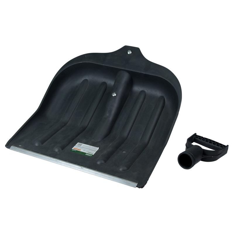 Лопата для уборки снега пластиковая 435×470×10мм (чёрная) (5049415) применяется для очистки придомовых территорий, тропинок, тротуаров и плоских крыш от снега. Противостоит налипанию снега и намерзанию льда, позволяет быстро и качественно избавиться как от небольшого снежного слоя, так и от сугробов. Характеристики: - Морозостойкий пластик; - Рабочая часть с широкой и ровной поверхностью; - Бортики препятствуют сползанию снежных пластов в стороны; - Алюминиевая пластина усиливает конструкцию и позволяет очищать намерзшие слои; - Комплектуется креплением для черенка и пластиковой ручкой.