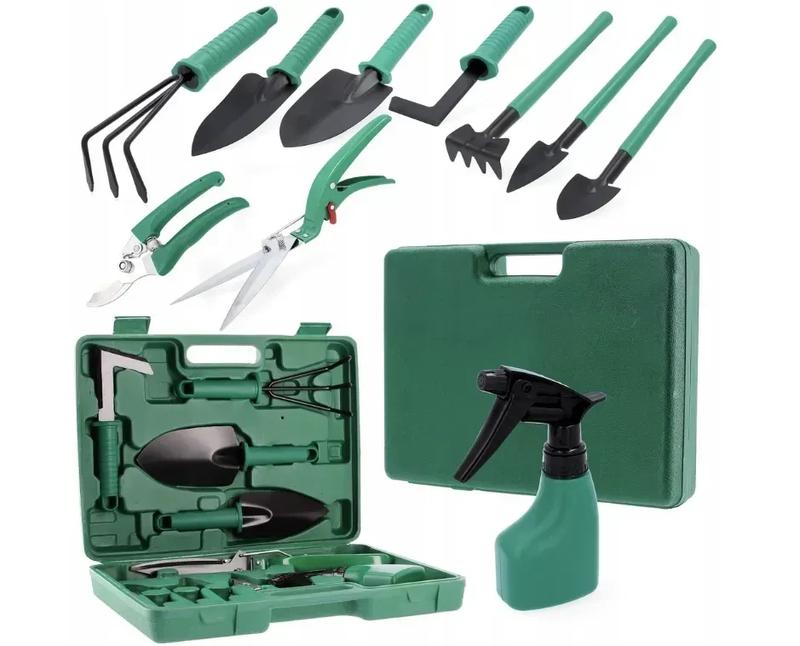 БОЛЬШОЙ НАБОР САДОВЫХ ИНСТРУМЕНТОВ Набор прочных инструментов -- отличное решение для тех, кто ищет функциональные инструменты для сада. Комплект помещён в удобный кейс, содержит все элементы, благодаря которым нужный инструмент всегда будет под рукой. Всего 10 высококачественных инструментов помогут качественно выполнять все садовые задачи. Эргономичные ручки обеспечивают комфорт при работе. КОМПЛЕКТ ИЗ 10 ПРЕДМЕТОВ ✅ В комплект входят: - ⭐ Широкий шпатель - ⭐ Узкий шпатель - ⭐ Когти / грабли - ⭐ Скребок - ⭐ Большие кусторезы - ⭐ Секатор - ⭐ Пульверизатор - ⭐ Маленький острый шпатель - ⭐ Маленький округлый шпатель - ⭐ Маленькие грабли Широкая садовая лопата Идеален для пересадки растений. Параметры: - ✔️ Общая длина: 25 см - ✔️ Рабочая ширина: 8 см Узкая садовая лопата Предназначен для пересадки растений. Параметры: - ✔️ Общая длина: 24,5 см - ✔️ Рабочая ширина: 6 см Садовые когти Предназначены для рыхления и аэрации почвы. Идеальны для каменистой почвы и узких посадок. Параметры: - ✔️ Общая длина: 22 см - ✔️ Рабочая ширина: 8 см Садовые грабли Отличны для рыхления и сгребания почвы между густыми растениями. Параметры: - ✔️ Общая длина: 16 см - ✔️ Рабочая ширина: 4,5 см Садовый скребок Позволяет убрать траву, сорняки и корни вдоль плитки и тротуара. Параметры: - ✔️ Общая длина: 20,5 см - ✔️ Рабочая ширина: 7 см Садовый распылитель ✔️ Эргономичный распылитель с удобным курком Садовые ножницы ✔️ Эргономичные ножницы для стрижки кустов Садовый секатор Удобный секатор для обрезки веток Параметры: - ✔️ Общая длина: 16,5 см - ✔️ Рабочая ширина: 1,5 см Маленькая узкая садовая лопатка Для точной посадки и пересадки растений. Параметры: - ✔️ Общая длина: 20 см - ✔️ Рабочая ширина: 3 см Маленькая широкая садовая лопатка Широкий шпатель идеально подходит для пересадки. Параметры: - ✔️ Общая длина: 19 см - ✔️ Рабочая ширина: 3,5 см Основные атрибуты Производитель Garden Line Состояние Новое Материал ручки Пластик