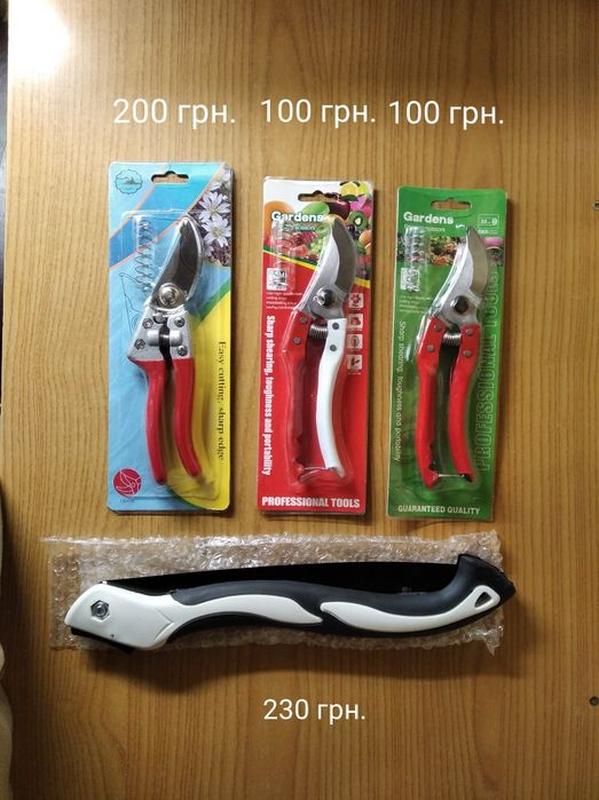 Секатор садовый, пила ручка Секатор садовый, пила, раскладная - новые. 1. Секатор - 200 грн. Серо-красный с прорезинованными ручками, фиксатор блокировки лезвия, запасная пружина, упаковка. L лезвие - 5,5 см. L ручки - 14 см. L общая длинна - 21 см. Есть количество. 2. Секатор - 100 грн. Красно-белый с железными ручками, фиксатор блокировки лезвия, запасная пружина, упаковка. L лезвие - 5.5 см. L ручки - 14 см. L общая длинна - 21 см. Есть количество. 3. Секатор - 100 грн. Красный с железными ручками, фиксатор блокировки лезвия, упаковка. L лезвие - 5.5 см. L ручка - 14 см. L общая длинна - 21 см. Есть количество. 4. Пила складная - 230 грн. Чёрно-белая с прорезиновой складной ручкой, пакет. Есть фиксатор - кнопка движения полотна. L ручки - 34,5 см. L полотна - 30 см. L общая длинна - 62,5 см. Есть количество. Звоните, пишите, спрашивайте. Есть Вайбер, Телеграм. Отправка как Новой так и Укр почтой.