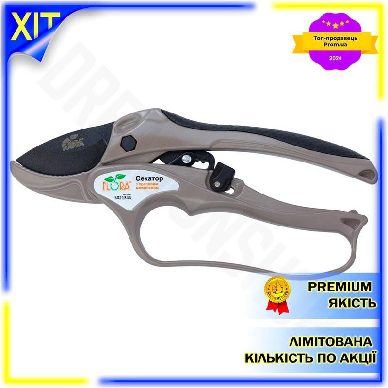 Dm секатор с храповым спецификация 2.2 механизмом flora 205мм для обрезки веток и побегов...