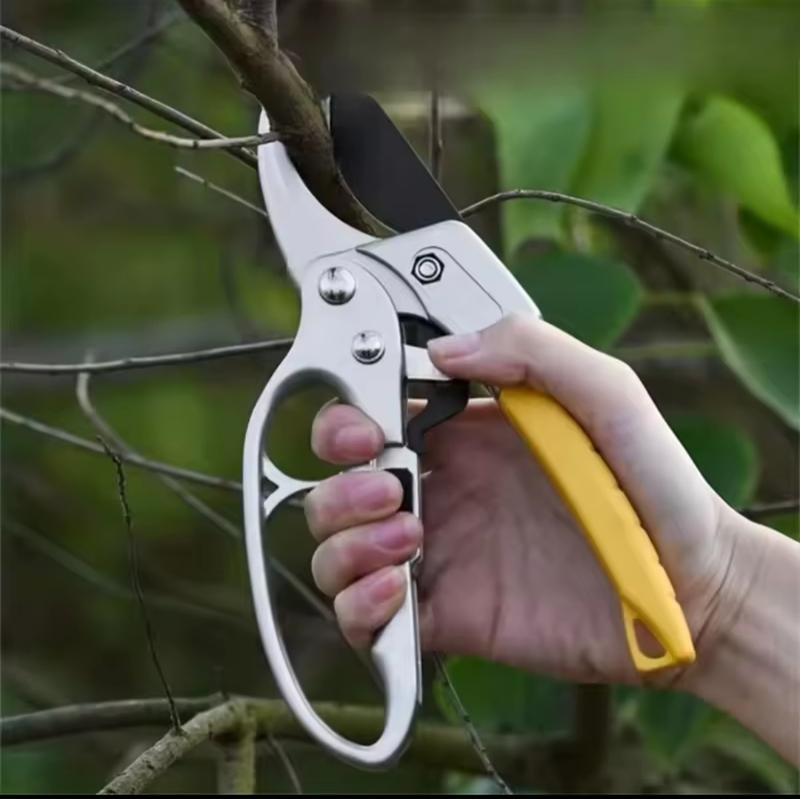 Професійний секатор для підрізування саду Переваги: ніж виготовлений із високоміцної сталі марки SK-5. ніж знімається для заточування. храповий механізм для стиснення. ергономічно спроєктовані нековзні ручки для зручного використання. підходить для підрізання гілок діаметром до 20 мм. матеріал корпусу виготовлений з алюмінієвого сплаву. Рекомендації щодо застосування: після використання протріть лезо шматком промащеної тканини. у разі потреби заточити лезо ножа останнє можна зняти окремо.