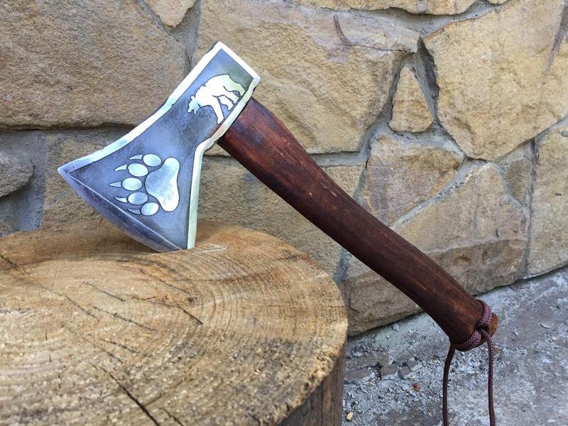 Топор с ручкой из бука изготовлен вручную в ретро стиле