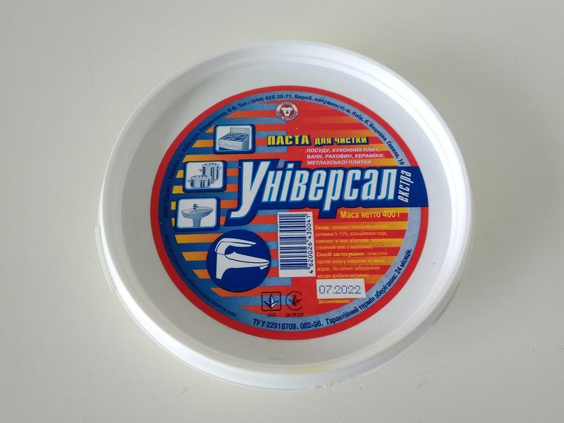 Паста Универсал для чистки посуды кастрюль, чайников, кухонных плит, ванн, раковин, керамики 400 грамм Те, кто знают, понимают что это отличная вещь! Кто еще не пробовал, вам стоит познакомиться с такой пастой. Цена 49 грн. Пересылаю Укр почтой или Новой почтой с полной предоплатой на карту ПриватБанка.