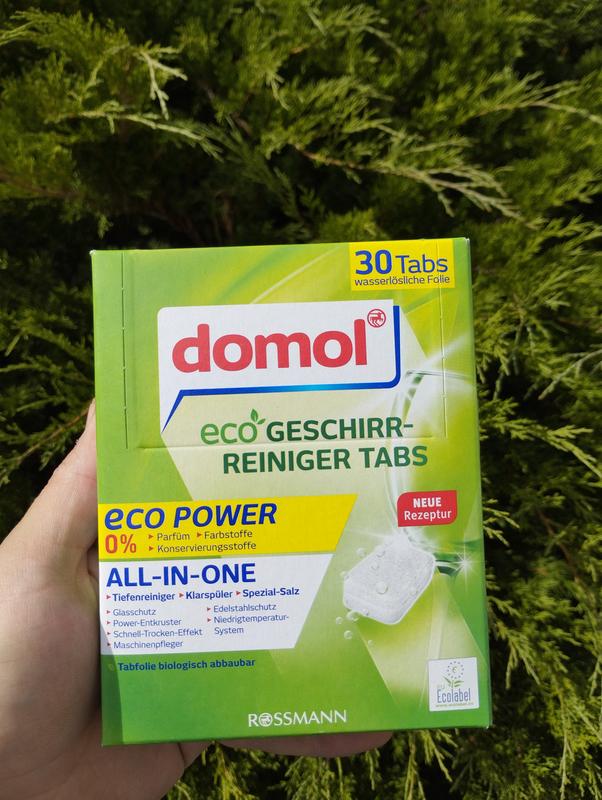 Эко-таблетки для мытья посуды Domol Eco Geschirr-Reiniger Tabs, 30 шт Эко-таблетки Domol Eco для мытья посуды в посудомоечной машине сочетают все необходимые функции для эффективного очищения, обеспечивая блестящий результат даже при низких температурах (от 40°С). Этот экологический продукт обеспечивает глубокое очищение и защищает вашу посудомоечную машину и посуду. Основные преимущества: - Глубокая очистка: эффективно устраняет даже сложные загрязнения - Ополаскиватель: предотвращает пятна и известковый налет, придавая сияющий блеск - Специальная соль: смягчает воду и защищает машину от известкового налета - Защита стекла: уплотняет стекло и защищает его от коррозии - Усилитель мощности: удаляет засохшие остатки пищи и тяжелые налеты Инструкция по использованию: 1. Поместите таблетку в водорастворимой пленке в дозировочную камеру посудомоечной машины. 2. Используйте программы с низкой температурой (от 40°C) для экономии ресурсов. 3. Для сильно загрязненной посуды выберите программы от 65°C. 4. Дополнительная соль и ополаскиватель нужны только для жесткой воды (от 21°dH). Domol Eco гарантирует чистый и блестящий результат мытья, независимо от наличия ополаскивателя или соли в машине.