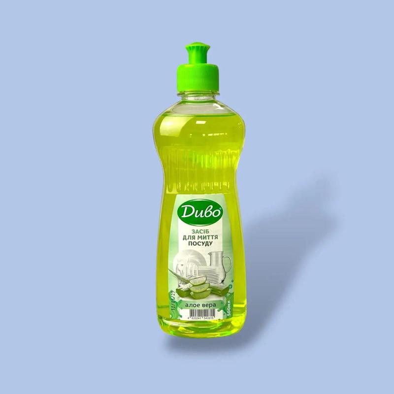 Ефективний засіб для миття посуду Диво з екстрактом алое вера ретельно видаляє жир і забруднення навіть у холодній воді. Завдяки натуральним компонентам працює на шкіру рук, не пересушує її й залишає приємний аромат.