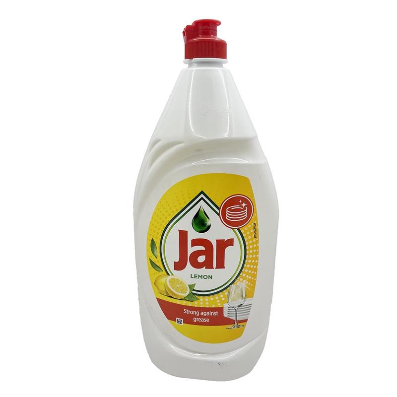 Засоби для ручного миття ПОСУДИ Jar Засіб для миття посуду Jar 1350 мл Лимон ефективно очищує посуд від жирних забруднень та залишків їжі, надаючи йому блиск і чистоту. Завдяки своїй потужній формулі, продукт справляється з будь- якими забрудненнями, не пошкоджуючи поверхню посуду і не залишаючи на ньому хімічних слідів. Лимонний аромат створює приємне відчуття свіжості, наповнюючи кухню легким цитрусовим запахом. Засіб має високу піноутворювальну здатність, що дозволяє економно використовувати продукт, при цьому досягати відмінного результату. Упаковка об'ємом 1350 мл є оптимальним варіантом для тривалого використання. Засіб для миття посуду Jar Лимон не тільки справляється з очищенням, але й дарує приємні відчуття завдяки своїй свіжій текстурі та аромату.