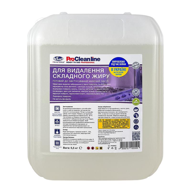 Антижир быстрого действия - эффективно удаляет загрязнение с таких поверхностей и техники: нержавеющая сталь, натуральный камень, эмалированные поверхности, кафель, пластик, вытяжки, чугунные изделия, сковородки, противня, мангалы, шампура, плиты, варочные поверхности, микроволновки, пароконвектоматы, печи. Удаляет даже сильнейшие загрязнения. Обезжиривает поверхность, обладает дезинфицирующим эффектом. Применение: С помощью распылителя или губки нанести средство на очищаемую поверхность оставить на несколько минут. Потереть щеткой или губкой, смыть водой. Поверхности, подлежащие обработке, рекомендуется подогреть до 40 – 50°С. Время выдержки на поверхности, в зависимости от интенсивности загрязнения от 5 до 15 мин. В дальнейшем средство тщательно смывается водой. Средство рекомендовано для профессионального использования в общепитах, на предприятиях пищевой промышленности, на объектах коммунально-бытового назначения. Средство запрещается применять для обработки алюминиевых, эмалированных, лакокрасочных изделий и неустойчивых поверхностей щелочи. Состав: Вода подготовлена, натрия гидроксид 5-15%, НПАР<5%, комплексообразователь.