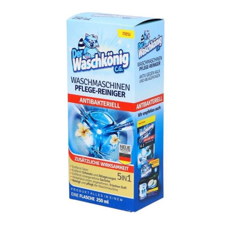 Der Waschkonig – отличный продукт 5 в 1 для комплексного ухода за стиральной машиной. Благодаря уникальной формуле, средство обеспечивает эффективную очистку внутренних механизмов техники. Особенности: Устранение отложений и загрязнений. Защищает от коррозии и накипи. Сражается с неприятным запахом. Средство оказывает деликатное действие, поэтому хранит механизмы и резиновые элементы стиральной машины. Обеспечивает антибактериальный эффект. Дарит приятный свежий аромат.