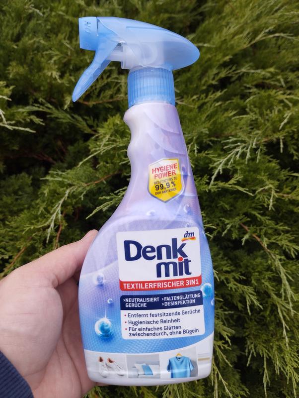 Освежитель текстиля Wrinkle smooth 3в1, 500 мл,очень интересовались ими Для гигиенической чистоты Устраняет укоренившиеся запахи Для легкого выпрямления между ними - без глажки Гигиенический освежитель текстиля и средство для разглаживания морщин 3 в 1 от Denkmit позволяет достичь надежной чистоты простым и несложным способом. Поскольку этот текстильный освежитель удаляет 99,9% бактерий.