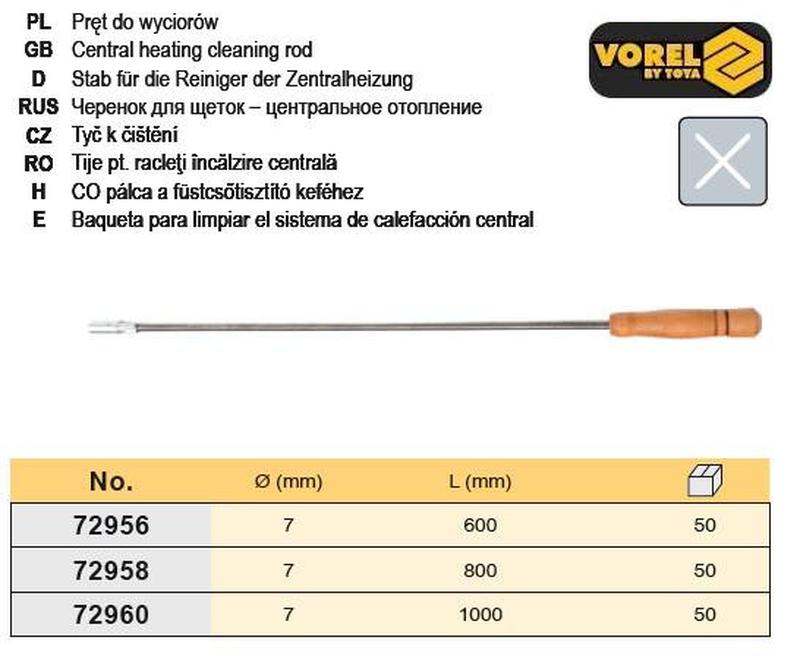 Шомпол для чистки дымоходов польша l=800 мм ø=7 мм vorel-72958