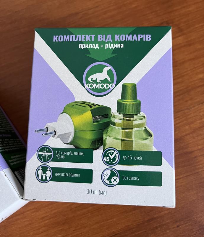 Прибор и жидкость от комаров, новый закрытый в пользовании не был. Объем 30 мл на 45 дней