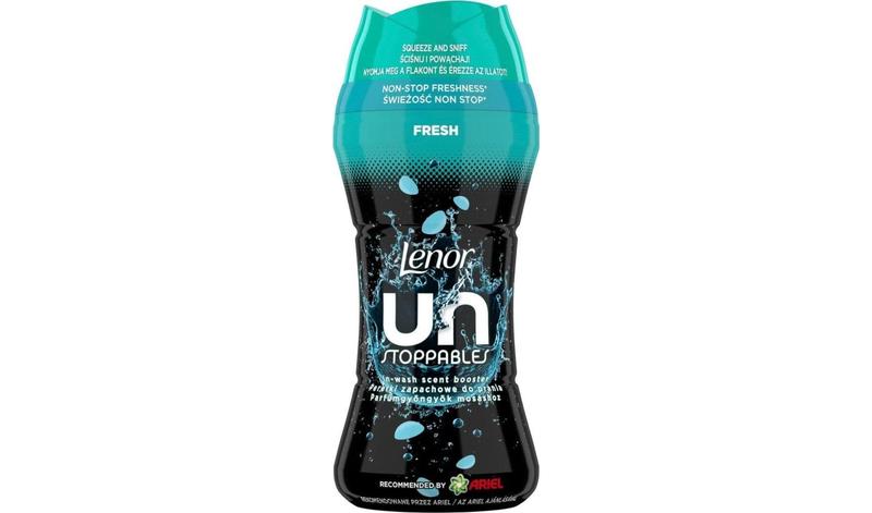 Парфумовані гранули для білизни Lenor Un Stoppables Свіжість 195г Для кого цей продукт Парфумовані гранули Lenor Un Stoppables Свіжість ідеально підходять для тих, хто прагне надати своєму одягу й білизні стійкий, свіжий аромат, який тримається до 12 тижнів під час зберігання в шафі. Це справжній must-have для спортивного одягу, рушників і постільної білизни, позаяк вони забезпечують інтенсивну, чисту свіжість. Ключові переваги - Ультрасвіжість: Забезпечують потужний заряд аромату, який зберігається до 12 тижнів (у разі зберігання). - Інтенсивний чистий аромат: Натхненний іскристими акордами цитрусових і соковитих фруктів у поєднанні з прозорими квітковими нотками. - Повне керування запахом: Ви самостійно контролюєте інтенсивність аромату, вибираючи кількість гранул. - Універсальність: Сумісні з усіма типами тканин, кольорів і пральними засобами. Надайте своїй білизні відчуття свіжості, яке не зупиняється! Ваше рішення: Довготривала свіжість проти стійких запахів Вам необхідно, щоб білизна залишалася ідеально свіжою не тільки після висихання, але й після тривалого часу в шафі? Гранули Lenor Un Stoppables -- це рішення для вас, якщо ви втомилися від того, що сильні запахи швидко повертаються, або якщо звичайний рідкий ополіскувач не дає достатньої інтенсивності. Вони проникають глибоко у волокна, забезпечуючи аромат, який активується щоразу під час руху одягу. Як це працює? Гранули Lenor, що містять високу концентрацію парфумованих олій, додаються безпосередньо в барабан на початку циклу прання. Вони починають розчинятися у воді, вивільняючи ароматичні речовини, які надійно прикріплюються до волокон тканини. Оскільки гранули розчиняються повільно, вони забезпечують поступове та глибоке насичення білизни ароматом, створюючи ефект «аромату non-stop». Спосіб застосування Засипте бажану кількість гранул (використовуйте ковпачок як дозатор, не більш ніж одну повну кришечку) безпосередньо в порожній барабан пральної машини. Потім завантажте білизну, додайте звичайний пральний засіб і ополіскувач (за бажанням) і запустіть програму прання.