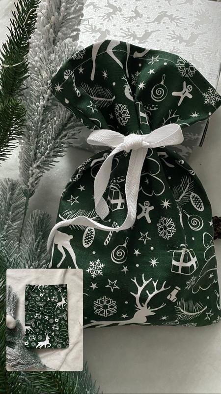 Мешочек зеленый с новогодним декором. Размер 32*22 см.Ткань - хлопок (сахарка). Цена 115 грн