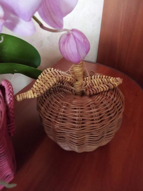 Корзина яблуко плетена з паперової лози. Розміри Висота чаші - 11 см Ширина чаші -17см Висота з критикою +хвостик -22см