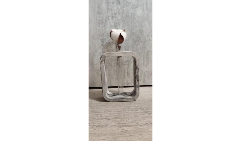 Размеры: - Высота: 14 см. - Ширина: 10,5 см. - Глубина 3,7 см. Размеры пробирки: - Высота: 16 см. - Диаметр: 1.6 см. В комплекте: ваза и 1 пробирка (без цветка). Материал основы - гипс. Материал пробирки - стекло. Основы делаем в разных цветах. Ручная работа.