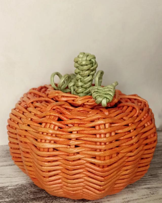 тыква из бумажной лозы Диаметр низ 10см., верх 15см,отверстие 8 см. Высота 11.5см. Инста лоза_баскет_дру (англ.литерами)