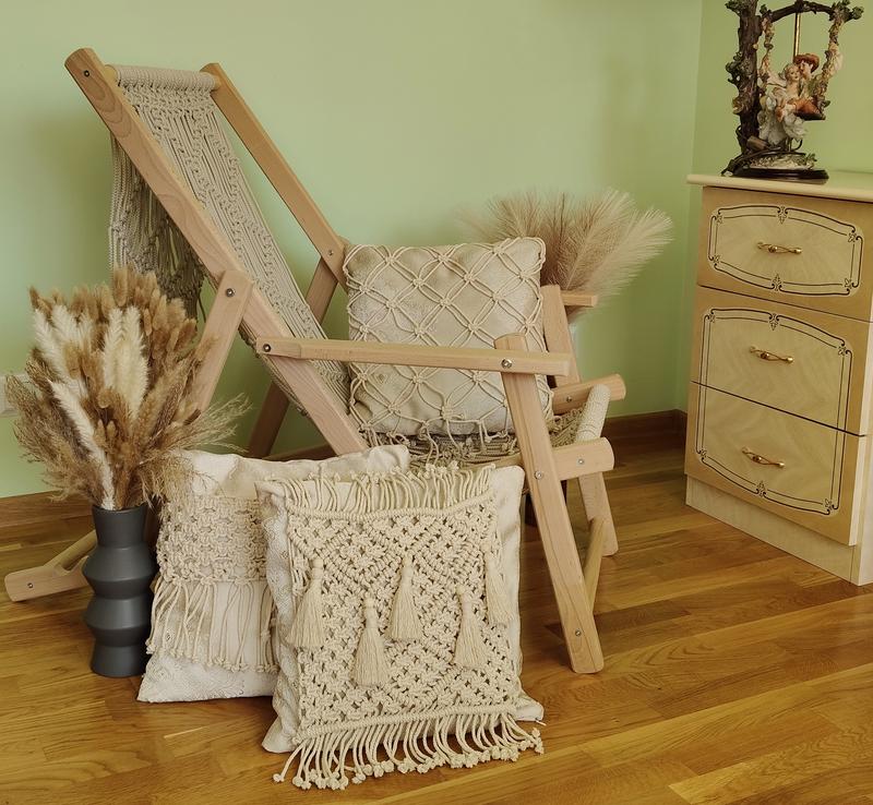 Декор на подушке размером (35-40)*(35-40) из хлопкового шнура в стиле бохо. Цена 650 грн за 3 шт.