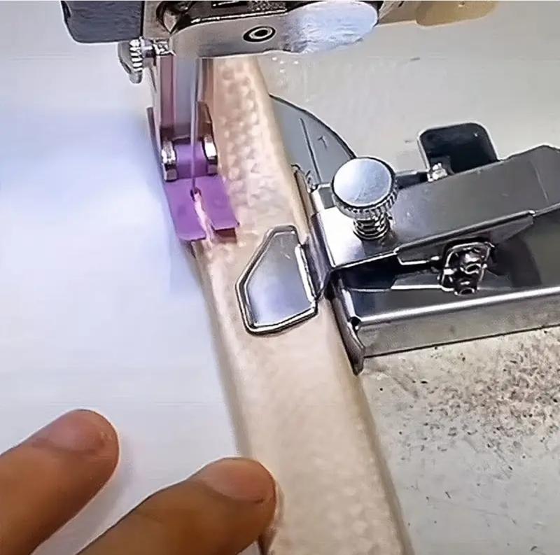 Ограничительная линейка или стабилизатор ткани на котором присутствует винт регулирования силы прижима пластиной ткани, в зависимости от толщины прошиваемого материала. Благодаря регулировке стабилизируется направление движения обрабатываемого изделия. Крепится линейка к платформе швейной машины магнитом.