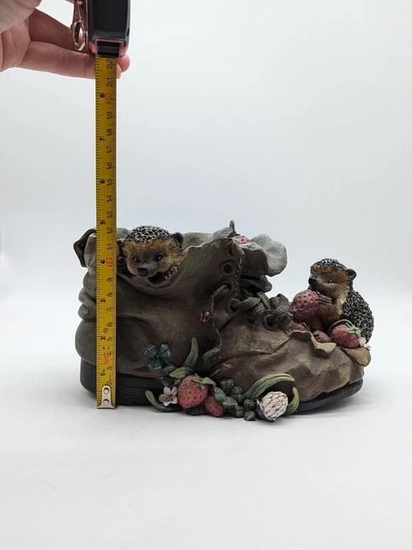 Декоративная статуэтка в виде ботинка с ежиками. Шикарное украшения для дома и сада.