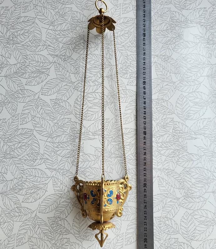 Кадило, старинная лампада, из латуни. Отсутствует один камушек.