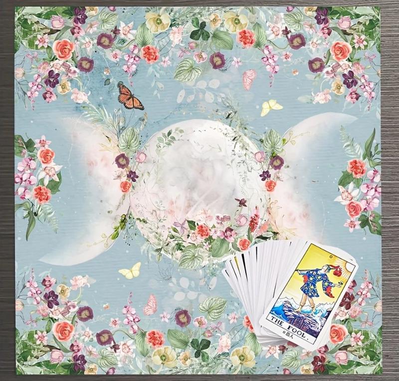 Скатерть для таро и рун с цветами розами и тройная луна алтарное покрывало голубое
