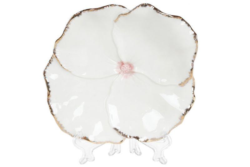 Декоративная фарфоровая подставка «Космей» 🌸 станет изысканным украшением Вашего интерьера! Форма нежного цветка с золотистыми акцентами. Диаметр - 15 см Идеально подходит для украшений или мелочей