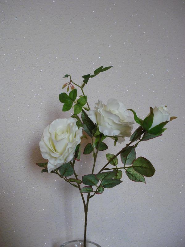 Большие розы белого цвета. Высота 70 см. В наличии 2 белые веточки. Цена за 1 шт. Производитель Польша. Эти цветы идеально дополнят ваш интерьер и наполнят квартиру яркими красками.
