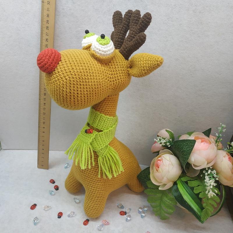 Интерьерная игрушка олень ручной работы связан крючком из хлопковой пряжи порадует взрослых и детей. Игрушка размером 32*20 см