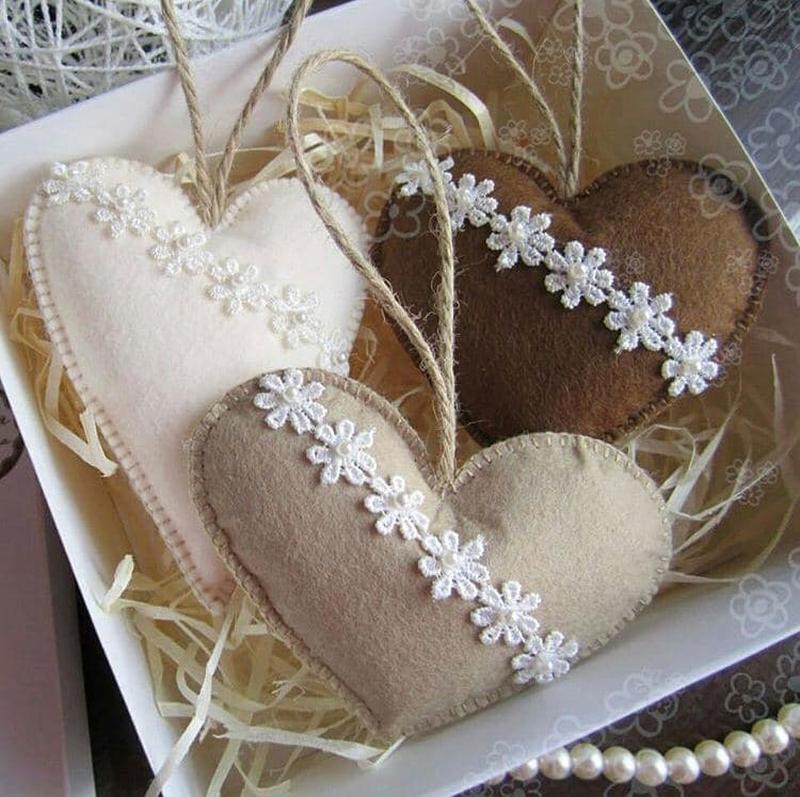 Не упускайте шанс порадовать своих близких такими замечательными игрушками ручной работы. Сделаны из качественного фетра, наполнитель гипоаллергенный холлофайбер. Можно использовать как игрушки на ёлку, как валентинки и просто как мягкие игрушки. Размер 7,5* 9 см. и 7*8см. В комплекте подарочная коробка.