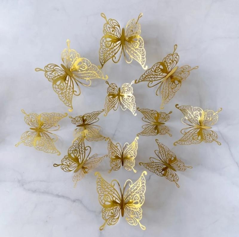 Декоративные бабочки. Цвет: золото. Материал: фольга. Количество: 12шт. Размер: 7-10см. В набор входит 2-х сторонний скотч.