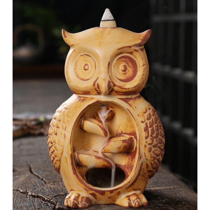 Подставка жидкий дым сова жёлтая back flow, подставка под конусы