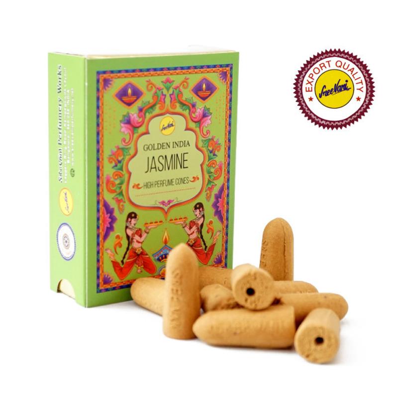 Sreevani Back Flow cones Jasmine Жасмин Производитель:Индия Вес: 50 г Длина 7 см Ширина 2.7 см Высота 9.5 см Maтериал Сухая масала