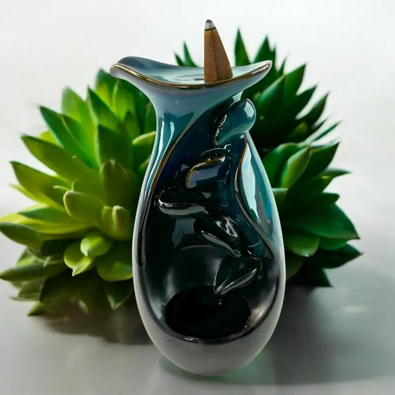Создайте атмосферу умиротворения с подставкой для благовоний "Тихая Вода". Этот стильный аксессуар выполнен в виде изогнутого водопада, по которому медленно стекает дым, создавая эффект каскадного потока. Черный блеск керамики подчеркивает изящные изгибы формы, а плавное течение дыма завораживает и погружает в состояние покоя. Подставка "Тихая Вода" станет прекрасным дополнением к вашему интерьеру, создавая ощущение уюта и расслабленности, идеально подходя для медитаций, релаксации и создания комфортной атмосферы дома.
