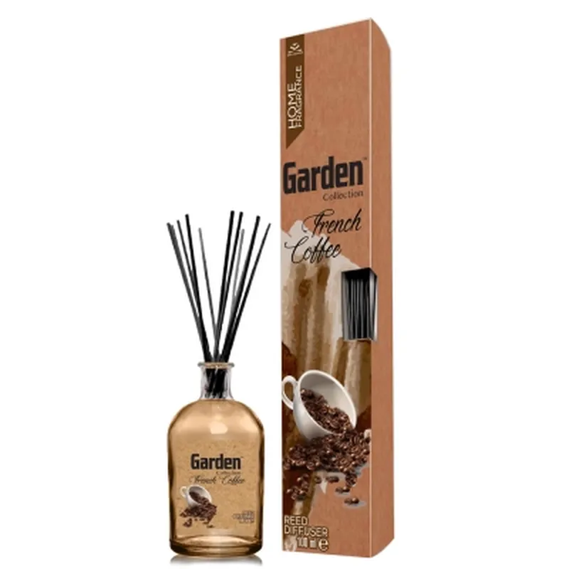 Верхние ноты: кофе с молоком, карамель Ноты сердца: молочная нота, кокос, гелиотроп Шлейфовые ноты: мускус, сахар, бобы тонка, взбитые сливки Аромадиффузор GARDEN Collection – это стильный элемент декора, который подчеркнет эстетику современного дома или офиса. Сдержанный лаконичный дизайн гармонично впишется в любой интерьер. Изысканная кофейно-молочная парфюмерная композиция French Coffee с ноткой карамели без слов расскажет об безупречном вкусе хозяев дома. Интенсивность запаха регулируется количеством палочек. Аромадиффузор обеспечивает длительный аромат. Не содержит вредных для здоровья веществ.