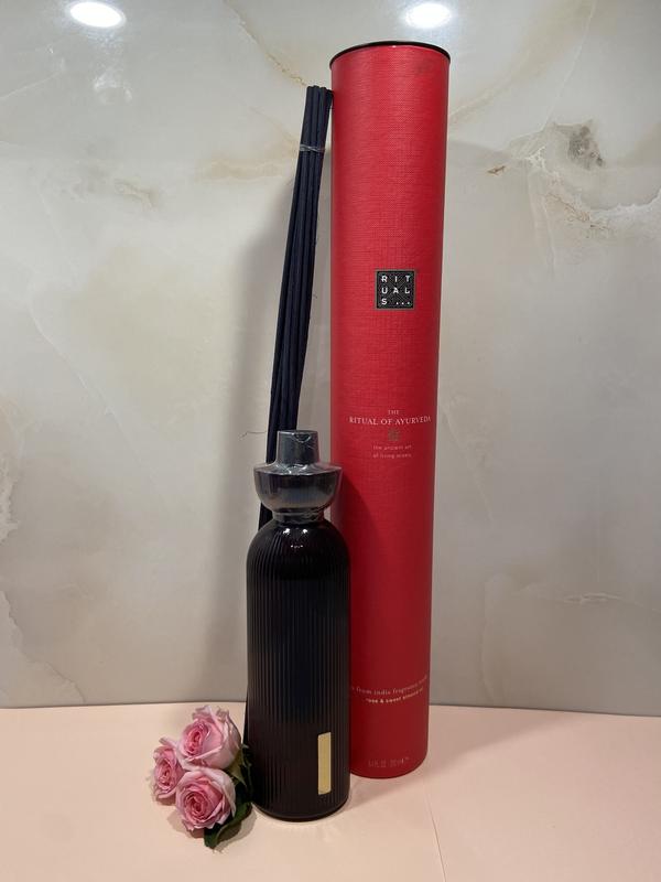Аромадифузор The Ritual Of Ayurveda Rituals – це чарівне поєднання індійської троянди та солодкого мигдалю. Унікальні ароматні ноти, які навіюють теплі спогади, розслабляють і огортають любов’ю. Ніжний і в міру солодкий запах зовсім не нав'язливий, швидко запам'ятовується і надовго зберігається у пам'яті. Аромадифузор має стильний, лаконічний дизайн та компактний флакон, який гармонійно підкреслить будь-який інтер'єр. А внаслідок високої стійкості аромат буде тішити досить довгий період часу. Для регулювання інтенсивності запаху достатньо контролювати кількість паличок у ємності з рідиною. Більше паличок – сильніший і насиченіший аромат. Переваги аромадифузора The Ritual Of Ayurveda Rituals: Стильний дизайн флакона (впишеться в будь-який інтер'єр) Дарує солодкуватий аромат троянди та мигдалю Розслабляє, знімає стрес і дарує гарний настрій Швидко розповсюджується, заповнюючи кожну кімнату Флакона вистачить на 2-4 місяці Спосіб застосування: відкрутити кришку флакона, вийняти пробку, закрити кришку назад. Помістити у флакон палички (з розрахунку 1 паличка на 8 м²). Палички повністю просочаться через 1-2 дні, приміщення наповниться приємним, ніжним ароматом.