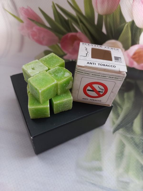 ароматические кубики с ароматом Anti Tobacco Ароматические кубики — это кусочки воска с ароматическими маслами, которые используются для ароматизации помещений. Они являются альтернативой свечам и эфирным маслам. Чтобы высвободить аромат, кубики помещают в специальную аромалампу (воскоплав), которая их растапливает. В расплавленном состоянии один кубик может ароматизировать помещение до 10 часов, а в сухом — до 4 месяцев. Обычно для ароматизации помещения площадью 100 квадратных футов (около 9,3 кв. м) достаточно 1–2 кубиков. Пересылаю укр почтой и новой почтой 132